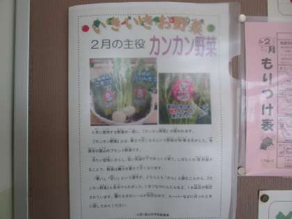 給食室配膳室前の掲示板より 公開日 2023/02/15 更新日 2023/02/15 学校だより 給食室配膳室前の掲示板に2月の主役の食材や大豆製品の効能などが紹介されていました。食事で元気の源を作りましょう。