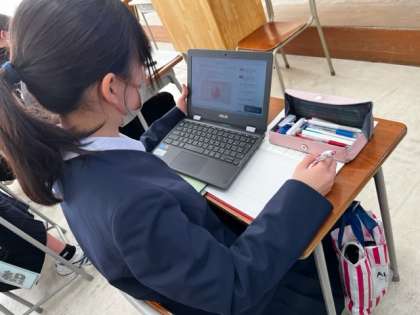 スプレッドシートに、思いついた課題を全員で書き込み、興味のあるレポート課題を選んでいました。