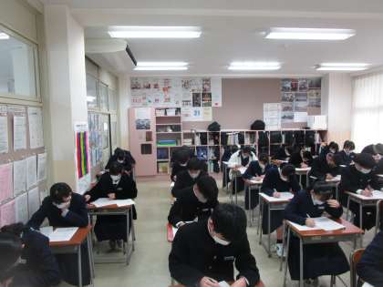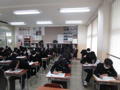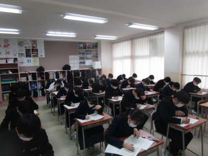 2月21日(火)1限 学年末考査1日目、3年1組のテストの様子です。