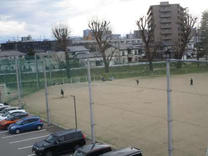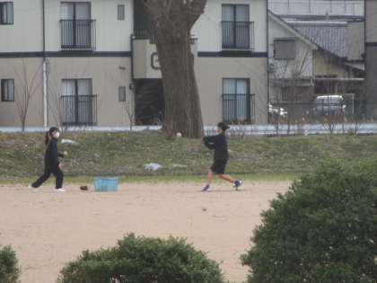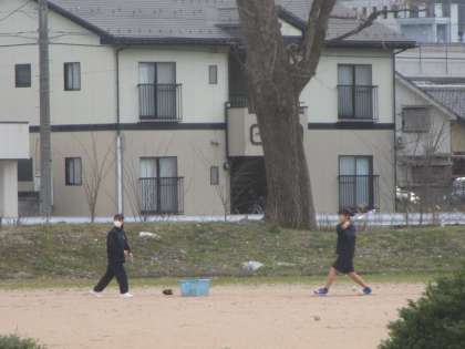 ソフトボール部が久しぶりのグラウンドで練習していました。キャッチボールやバッティングを頑張っていました。