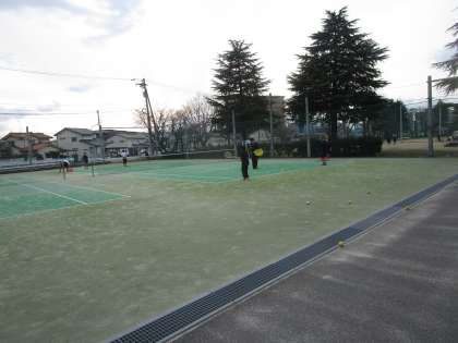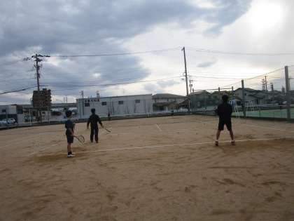 顧問の先生が球出しをして練習していました。1年生も久しぶりのテニスコートで打ち合いを楽しんでいます。