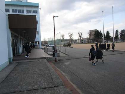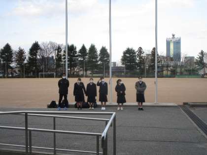 生活委員会のよる朝のあいさつリレーはソフトボール部でした。少人数で頑張っていました。新入生にたくさん入ってもらい大人数で来年度は挨拶運動ができればと意気込んでいます。