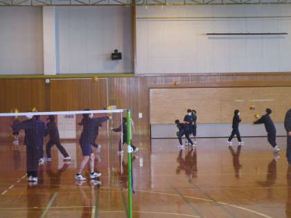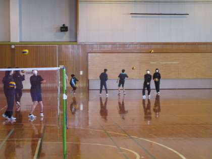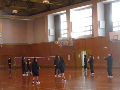 1年2組保健体育 バレーボール 公開日 2023/03/01 更新日 2023/03/01 1学年 3月1日(水)3限 1年2組の保健体育は体育館でバレーボールの学習をしていました。アンダーハンドの直上パスを練習していました。