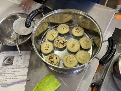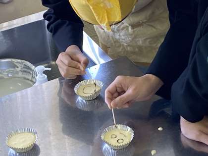 3月1日(水) 技術・家庭科で幼児のためのおやつ作りの調理実習をしました。 担任の先生も飛び入り参加しました。