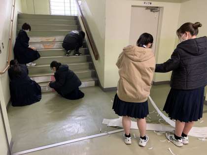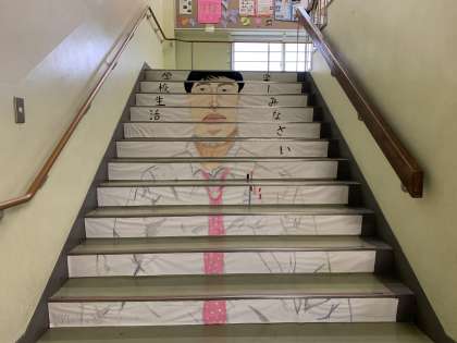 3年生から在校生への階段アート