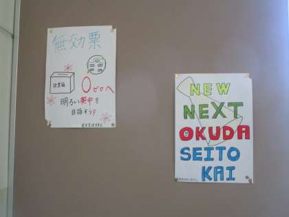 生徒会選挙ポスター廊下等に掲示されています。後期生徒会から来年度前期の生徒会へのバトンタッチです。