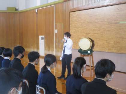 県立一般入試激励会サプライズその3 公開日 2023/03/07 更新日 2023/03/07 3学年 学年の先生方のエールの後に応援団長を務めた竹内先生から締めの言葉がありました。 最後に、必勝はちまきをしてもう一度生徒のためにエールを送りました。心和むひとときを味わった3年生、ぜひ、頑張ってきてください。