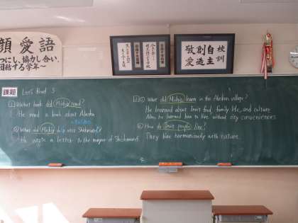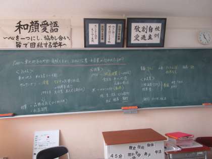 英語と社会の板書です。クロムブックも使っていますが、ノートに書くことはやはり学習の基本ですね。
