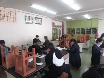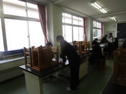 選挙管理委員が開票作業を理科室でしていました。厳正公正に仕事をこなしていました。