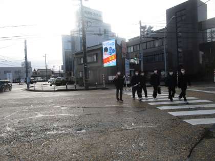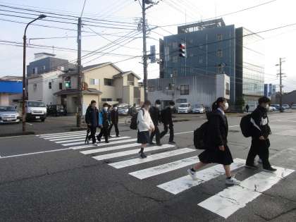 奥田中学校前横断歩道、窪本町交差点の様子 公開日 2023/03/10 更新日 2023/03/10 学校だより 朝の横断歩道の渡り方は、安全に気をつけて横断してくれています。挨拶も気持ちよく交わしてくれます。広がって歩いているのが少し気になります。横断歩道に限らず友達と横に広がって歩行しないよう周りの人に気遣って登下校しましょう。