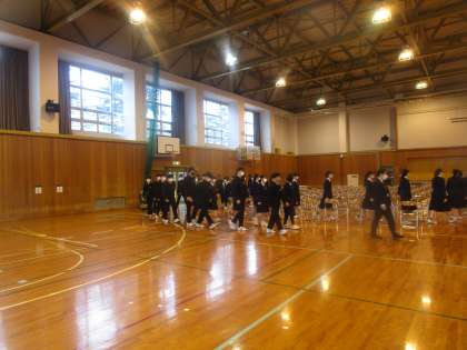 卒業式の練習の様子 公開日 2023/03/13 更新日 2023/03/13 3学年 3月13日(月)1限 卒業式まであと3日、3年生は卒業式の練習をしていました。しみじみと入退場の練習をしていました。