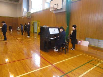 3年生が体育館で卒業の歌の練習をしていました。