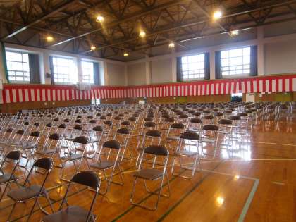同窓会入会式等の体育館の準備が完了しました