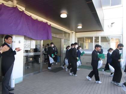 笑顔で学舎を巣立って行きました 公開日 2023/03/15 更新日 2023/03/15 3学年 義務教育最後の締めくくりにふさわしいすばらしい卒業式でした。3年間の積み重ねが現れた卒業式でした。これからそれぞれの道を力強く突き進んでください。