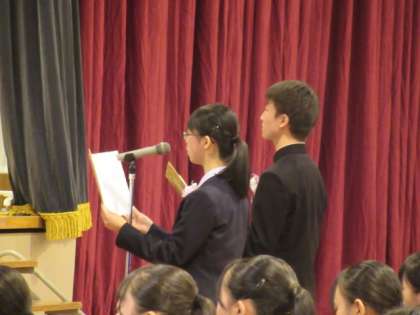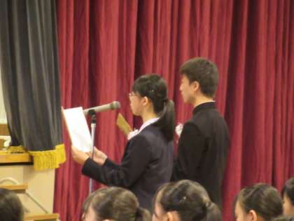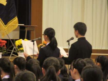 今年は男女による2人の答辞となりました。コロナ禍の中、男女が協力して頑張ってきた想いがこもっていました。