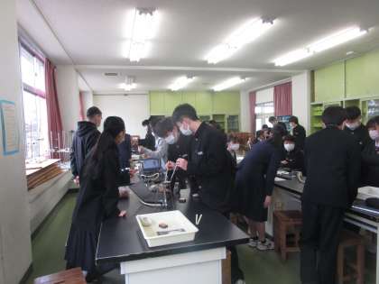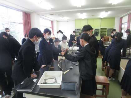 2年1組 理科 公開日 2023/03/17 更新日 2023/03/17 2学年 3月17日(金)1限 2年1組の理科は理科室でカルメ焼きに挑戦していました。クロムブックで動画で確認しながら実験していました。
