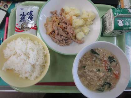 本日の給食 公開日 2023/03/17 更新日 2023/03/17 学校だより 3月17日(金) 本日の給食は、ごはん、牛乳、豚肉のキムチ炒め、中華かき玉汁、冷製ポテト、味付け小魚でした。今年度の給食も来週あと3回になります。