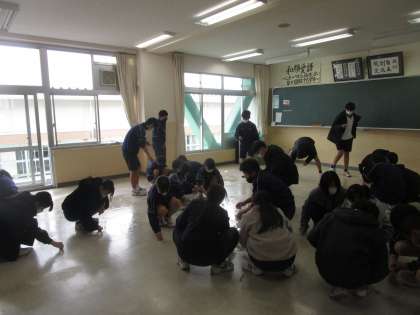 教室をピカピカに 公開日 2023/03/17 更新日 2023/03/17 2学年 3月17日(金)放課後 ワックスがけの前にクラスみんなで1年間の教室の汚れをごしごし、ピカピカにしてワックスがけです。