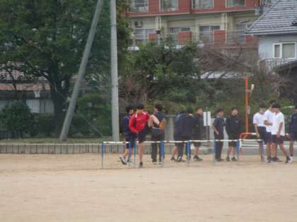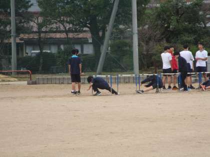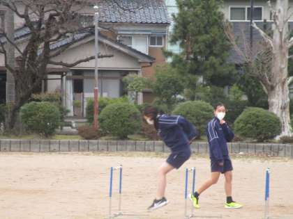3月17日(金) グラウンドで男女陸上競技部がハードルを使ったトレーニングをしていました。