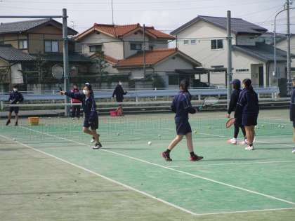 春休みの部活動 ソフトテニス部 公開日 2023/03/27 更新日 2023/03/27 部活動 3月27日(月)午前 女子ソフトテニス部がスポンジで水たまりを吸収してクレーコートも使って練習していました。1年生も1年間で上手になり、新入生の入部を楽しみに頑張っていました。