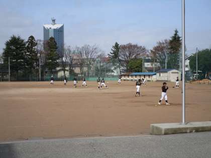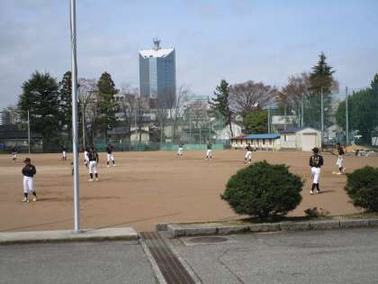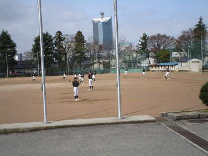 野球部がグラウンドで頑張っていました。4月初旬の大会に向けて元気はつらつ張りきって練習していました。