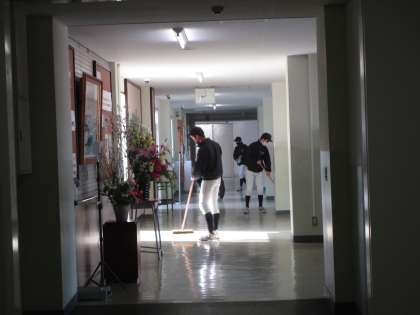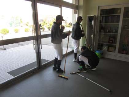 野球部 清掃ボランティア 公開日 2023/03/28 更新日 2023/03/28 部活動 3月28日(火)朝 野球部がいつも休業中に清掃ボランティアをしてから部活動に取り組んでいます。玄関の清掃、玄関前の廊下の雑巾がけをしてくれています。