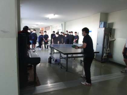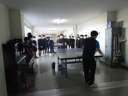春休み中の部活動 男子卓球部 公開日 2023/03/28 更新日 2023/03/28 部活動 3月28日(火)午前 男子卓球部が廊下で練習していました。顧問の先生から様々なサーブについて説明、示範があり、自分のサーブのレベルアップに生かそうとしていました。