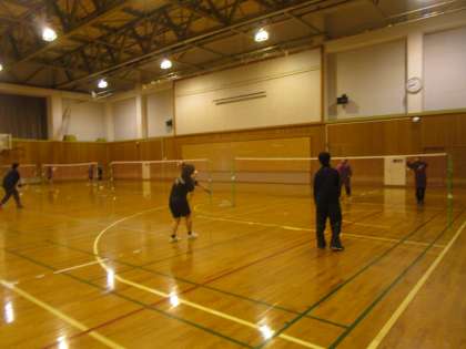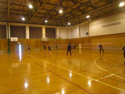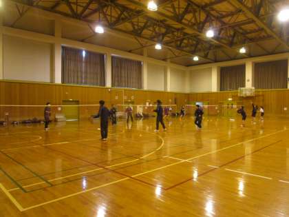 男女バドミントン部が体育館で練習していました。休みならではたっぷり練習していました。