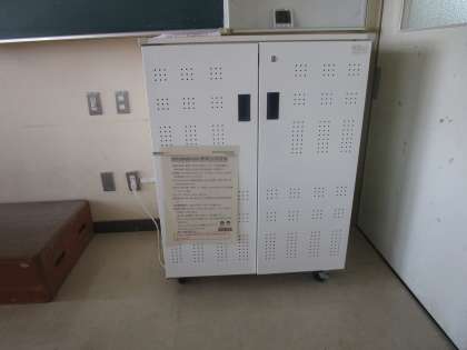 クロムブックのキャビネット 公開日 2023/03/31 更新日 2023/03/31 学校公開日 各教室の右前にクロムブックのキャビネットがあります。小学校でも使っていたと思います。大切に使いましょう。