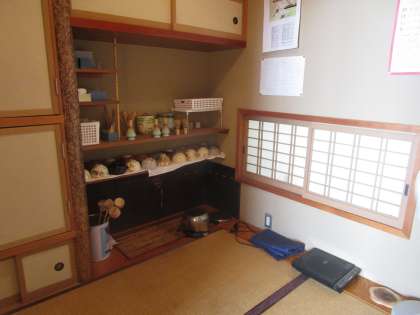 C棟2階作法室です。放課後、茶道部が週1回作動を講師の方から習っています。