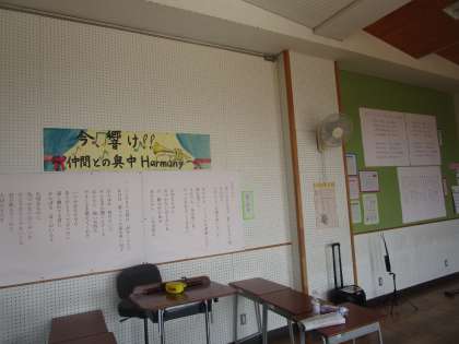 C棟3階第1音楽室です。音楽の授業や放課後吹奏楽部が利用しています。とても広いです。