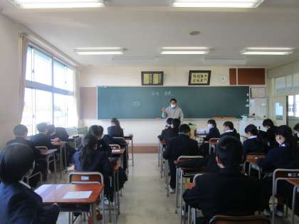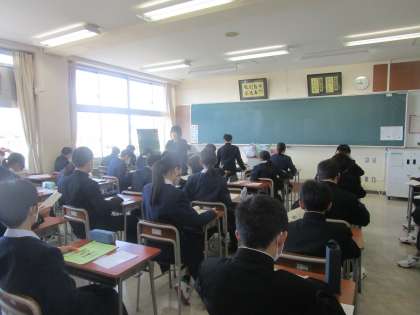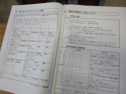 4月10日(月)1限 新入生オリエンテーションのしおりに基づいて中学校生活について説明されています。