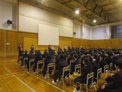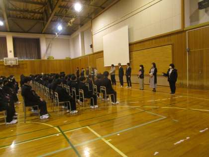 1学年学年集会 公開日 2023/04/10 更新日 2023/04/10 1学年 4月10日(月)3限 1年生が体育館で学年集会をしていました。2・3年生同様、学年スタッフの紹介と生徒へのメッセージが伝えられました。