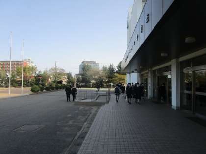 生徒玄関は7時45分に解錠されます 公開日 2023/04/11 更新日 2023/04/11 学校だより 4月11日(火)朝 生徒玄関前に7時45分の解錠を待っている生徒がいます。特別な場合を強風だとか低温、雪がひどいなどの時を除いて7時45分に生徒玄関を解錠しています。 玄関には校長先生や保健の先生が生徒の登校の様子を見守り、挨拶を交わしています。 1年生は解錠まで友達とおしゃべりに夢中な生徒もいます。