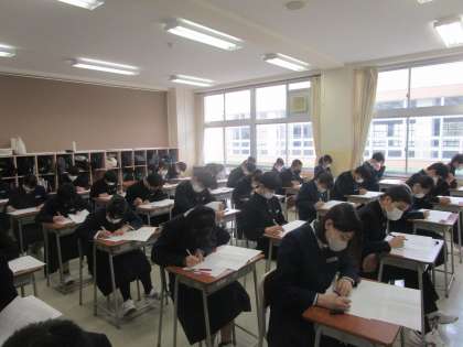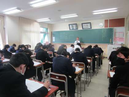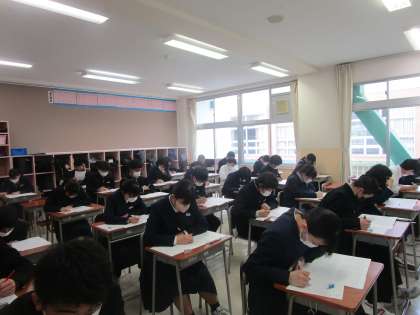 4月11日(火)1限 3年生が県中教研学力調査の国語のテストに挑んでいました。