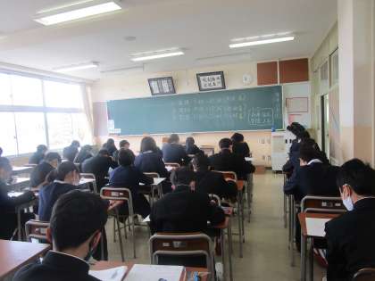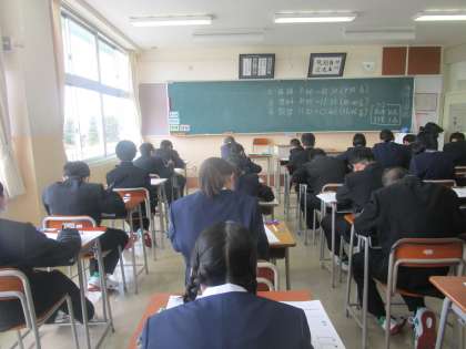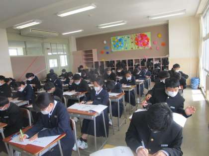 4月11日(火)3限 1年2組の生徒が富山市中1学力調査に挑んでいました。