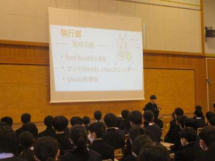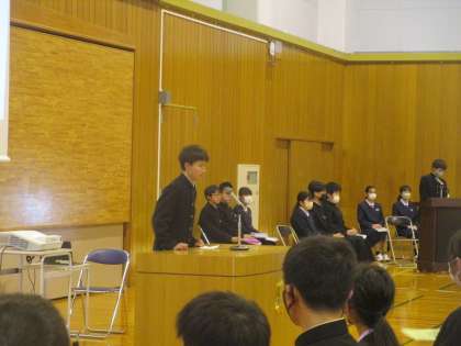 生徒会入会式をおこないました 公開日 2023/04/11 更新日 2023/04/11 生徒会 5年ぶりほどの生徒会入会式となりました。生徒会の説明、各委員会の説明を生徒会執行部、委員長が説明し、1年生の代表が、生徒会入会の誓いの言葉を力強く述べてくれました。全校生徒603名の生徒会がスタートです。