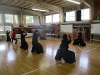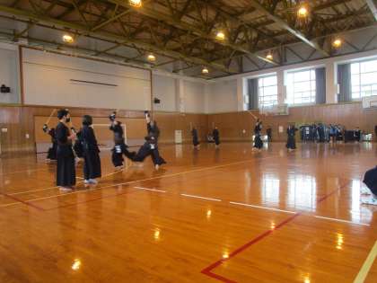武道館でやっている練習をみんなに見せました。迫力に1年生もびっくりしていました。