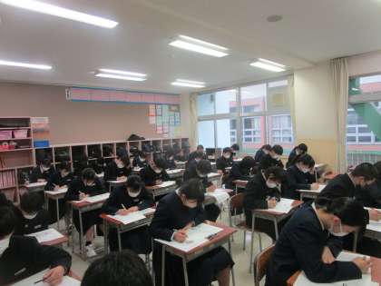 4月12日(水) 県中教研学力調査2日目1限の3年生のテストの様子です。