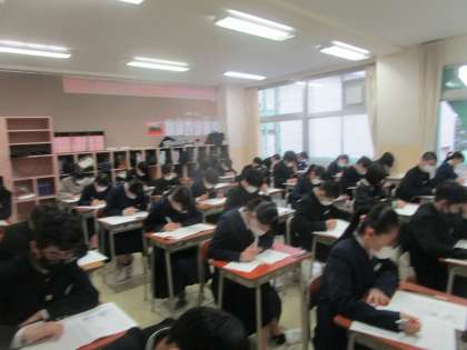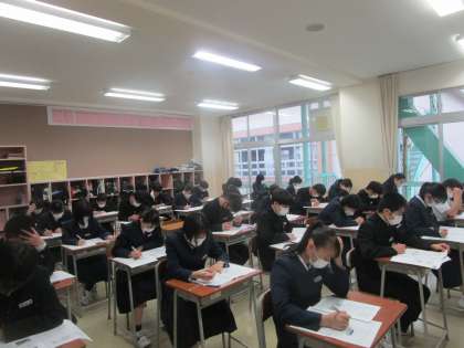 4月12日(水)1限 県中教研学力調査2日目1限社会のテストに挑んでいます。