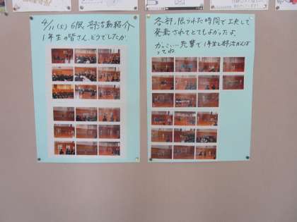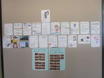 生徒玄関前の掲示板に部活動紹介の写真が掲示されました。短い時間の中、各部、一生懸命工夫して発表していました。
