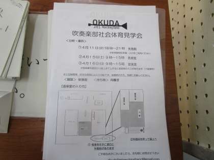 吹奏楽部はパンフレットなどを作成して、体験入部を歓迎していました。楽器の使い方を1年生に教えてうまくいって拍手している先輩、一生懸命教えている先輩、吹奏楽の楽しさを実感している1年生に思わず感動しました。