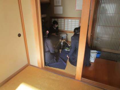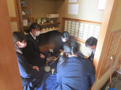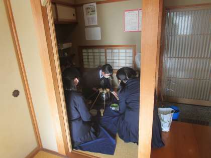 クラブ講師の先生はおられませんでしたが、1年生向けに茶道部がお茶の作法を教えていました。