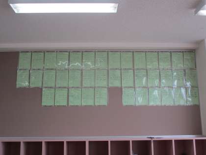 1年生は早いクラスが自己紹介カードを掲示していました。担任の先生の自己紹介カードもありました。23日の授業参観に向けて掲示物もこれから増えてくることと思います。
