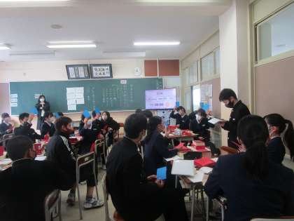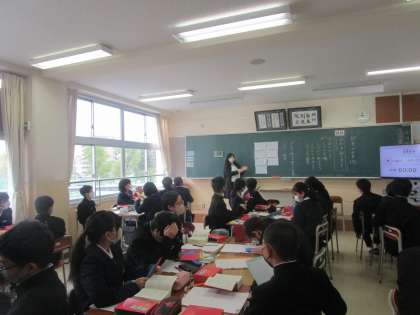 2年1組 国語 公開日 2023/04/17 更新日 2023/04/17 2学年 4月17日(月)4限 2年1組の国語は、「れで始まるあまい言葉」を学習していました。班で考えた説明を聞いて納得したら青いカードを頭の上に示していました。