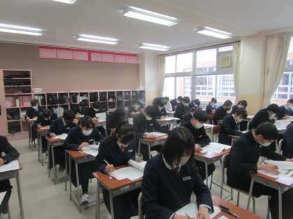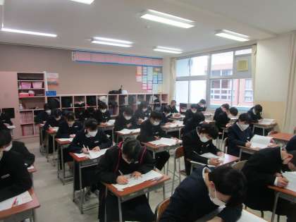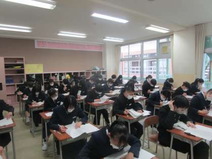 3年生が全国学力学習状況調査、1限国語の調査に挑んでいます。各自、どんな力が身についている、不十分かなど確かめる機会となります。