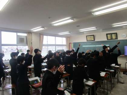 1年2組 数学 公開日 2023/04/19 更新日 2023/04/19 1学年 4月19日(水)2限 1年2組の英語は、意欲的に挙手したり積極的に授業に取り組んでいました。中学校の英語頑張ろうという意欲が伝わってきました。