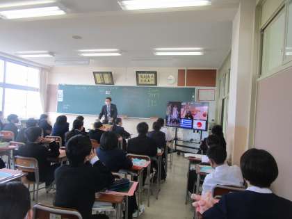 1年5組 英語 公開日 2023/04/20 更新日 2023/04/20 1学年 4月20日(木)1限 1年5組の英語は、ALTの先生、ルーカス先生の初めての授業でした。ルーカス先生が自己紹介し、写真等を見せながら生徒に話していました。ルーカス先生の家族のこと、スポーツが好きなこと、野球やバスケットボール、NBA八村選手の話題も出てきました。英語を通して視野を広げたり、他の国の考え方を学んでほしいものです。