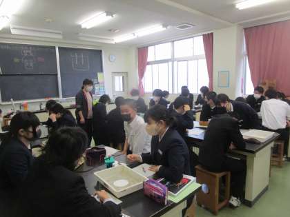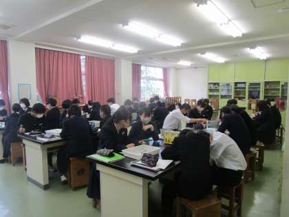 3年4組の理科は、理科室で「電解質が解けた水溶液に電流を流すとどうなるのだろうか」という課題で実験して確かめていました。