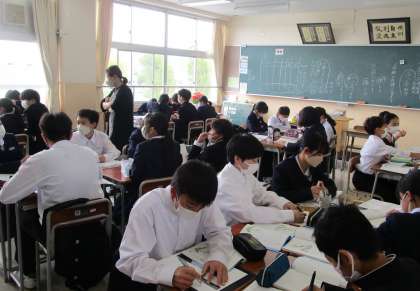 中学校の勉強、がんばれ! 公開日 2023/04/21 更新日 2023/04/21 1学年 4月21日(金) 4限 入学して2週間が経ち、一年生は中学校の授業にも慣れたようです。数学では集中して聞き、よく考え、国語では意元気よく音読をしていました。